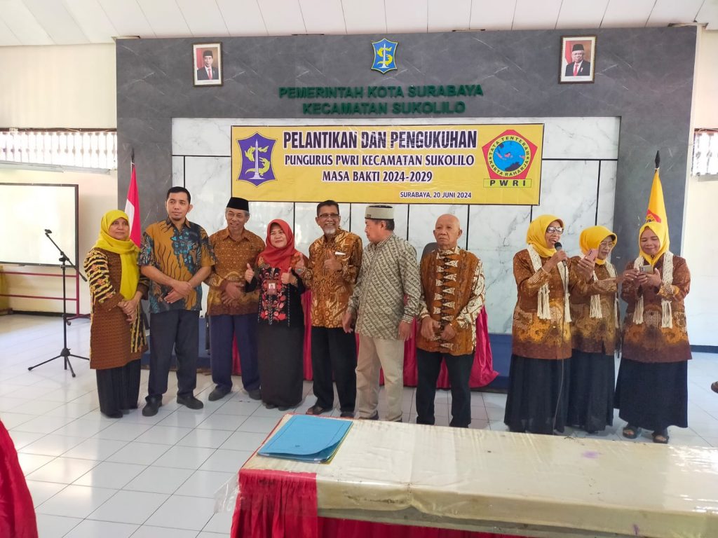 Pak Sekcam Sukolilo, Taufik Siswanto, beserta jajarannya menghadiri acara pelantikan pengurus Persatuan Wredatama Republik Indonesia (PWRI) tingkat Kecamatan Sukolilo, masa bakti 2024 – 2029 di Aula Kantor Kecamatan Sukolilo, Kamis (20/06/2024)