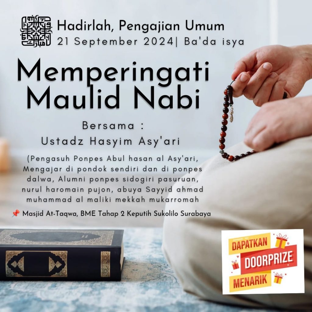 Acara Maulid Nabi kali ini, dilaksanakan tanggal 20 September 2024 di Masjid Al-Taqwa. Diisi oleh Ust. Hasyim Asy’ari